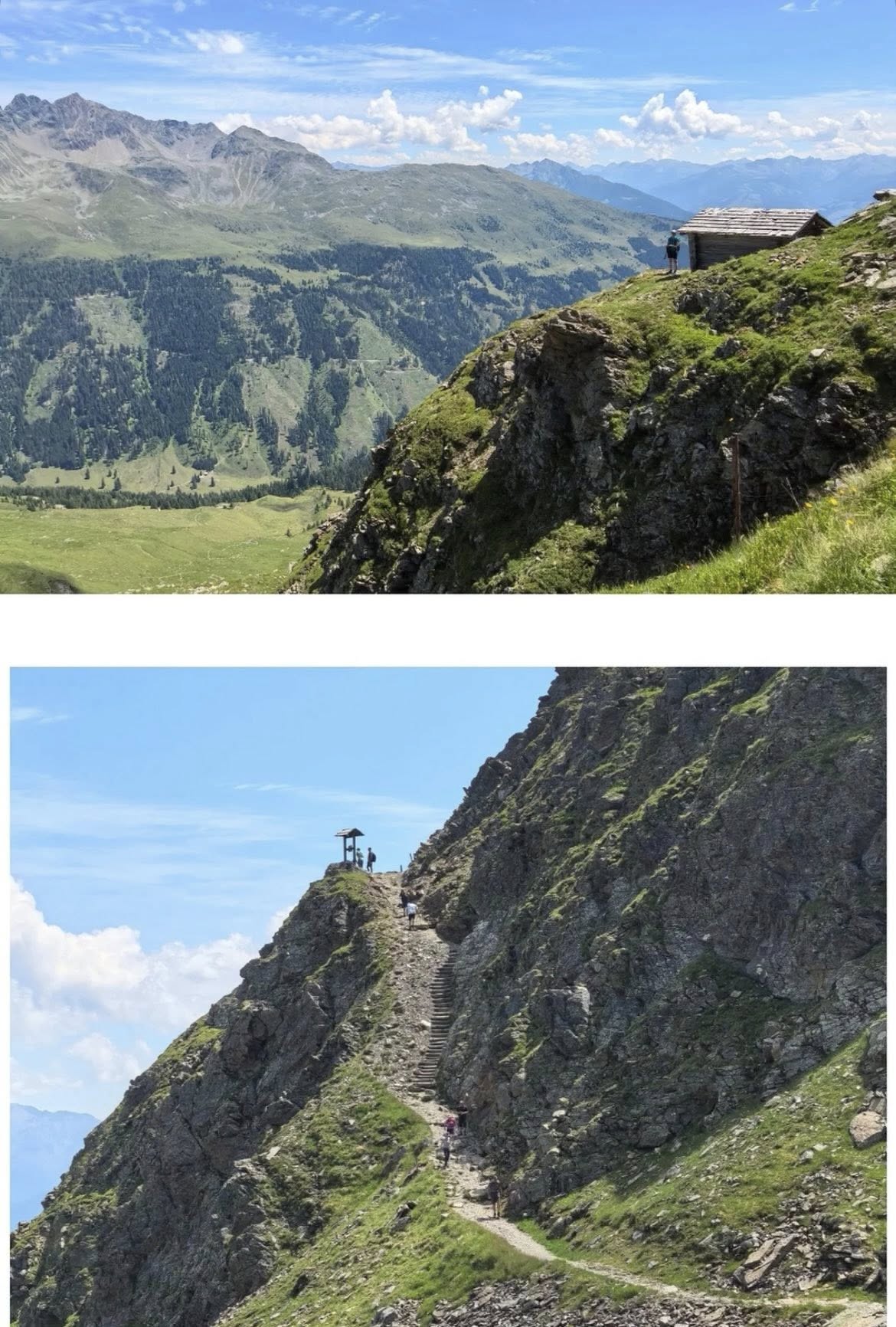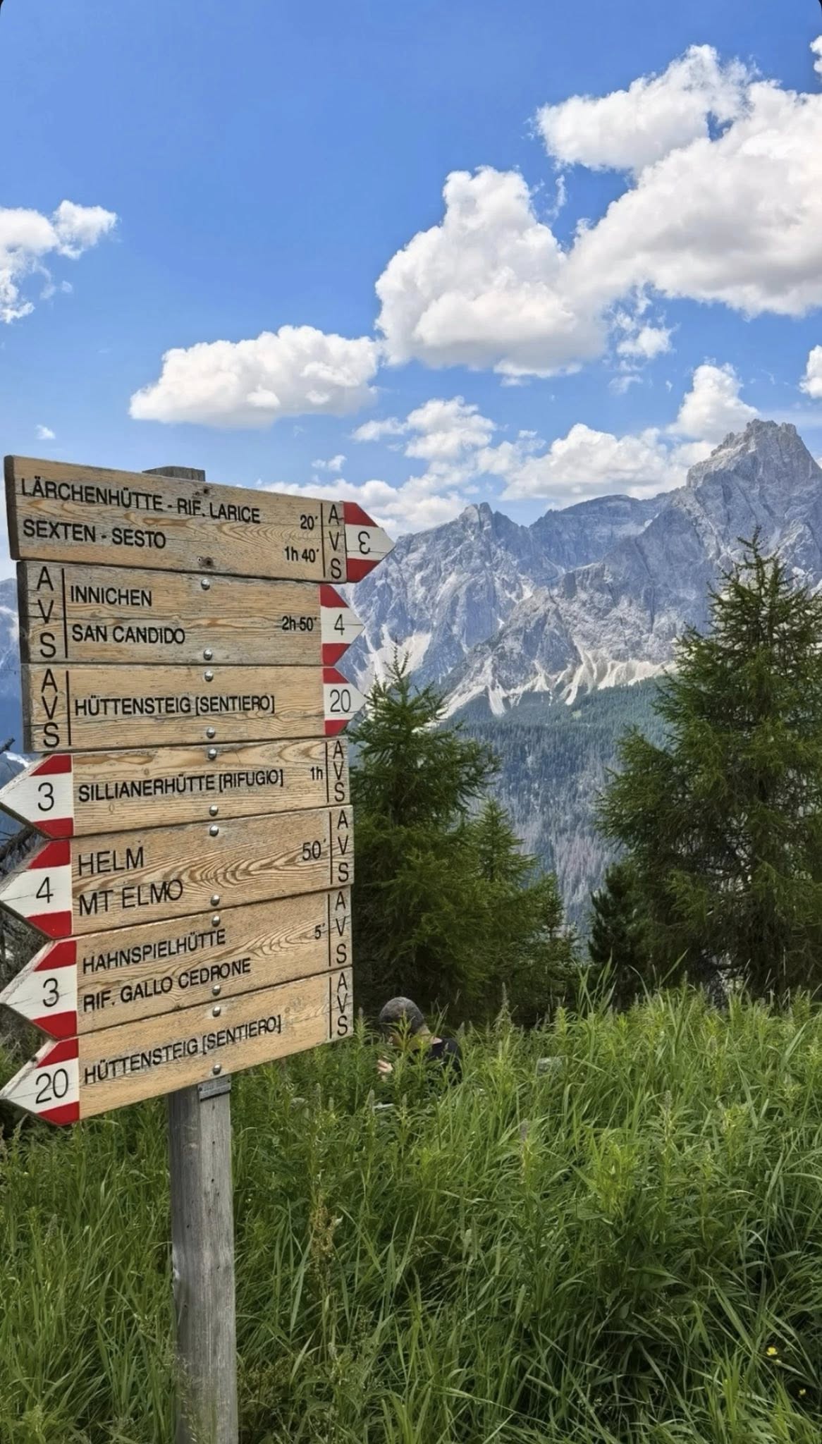 Am zweiten Tag ging es gleich richtig in die Höhe: Tölzer Gipfel und Glaugen Gipfel standen auf dem Programm. Der Aufstieg war steil, aber auf dem Weg konnte ich kleine Murmeltiere entdecken und das Zwitschern der Bergvögel hören. Oben angekommen, bot sich ein 360-Grad-Panorama: die umliegenden Dolomiten, grüne Täler und glitzernde Bergbäche – einfach atemberaubend! Ich habe meine kleine Fahne ausgepackt und stolz auf den Gipfeln posiert.
